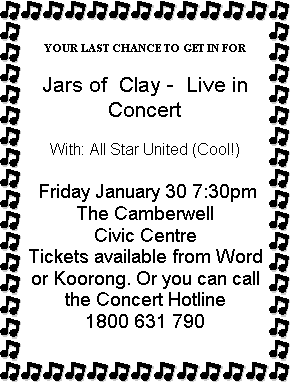 Looks interesting. Bit like a 'Mini Hillsong' See Pete if you'd like more info. Ph 55616146.